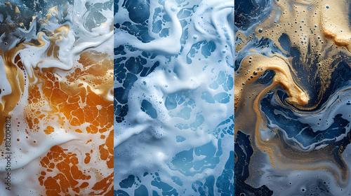 Naklejka premium Colorful abstract background images featuring flowing liquid textures in orange, blue, and golden tones, perfect for creative and artistic projects.
