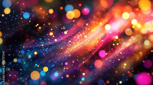 © Maksum Udod, Obraz premium Colorful abstract background with bright lights and blurred dots creating a magical atmosphere for designs or wallpapers.