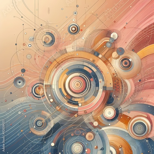 © Komsan, Obraz premium Colorful abstract background with digital circles and geometric patterns