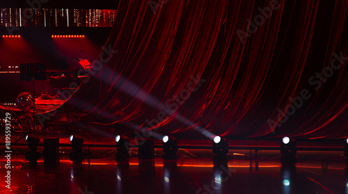 © serhii, Fototapeta premium colorful abstract background with empty concert stage with red curtains and spotlights
