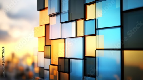 Fototapeta premium Colorful Abstract Background with Geometric Glass Shapes in Blue and Orange Tones Creating a Modern and Vibrant Visual Effect for Design Projects