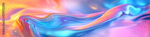 © Mehdi, Fototapeta premium Colorful abstract background with holographic iridescent colors, fluid liquid waves, and blurred gradient in blue, pink, orange, and yellow. Holographic texture for design elements.