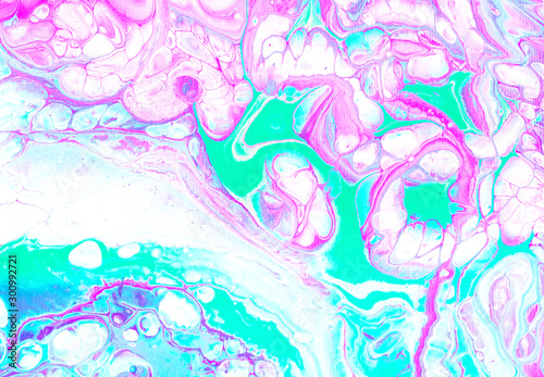 © Nataliia, Fototapeta premium Colorful abstract background with mixed acrylic paints. Hand painted in the style of Fluid art. Decorative marble backdrop. Trendy color
