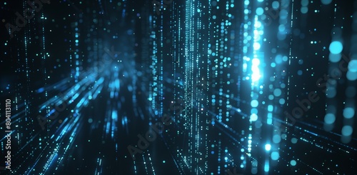 © goami, Obraz premium colorful abstract background with shiny neon glowing blue glitter and waves, technology and cyberspace background