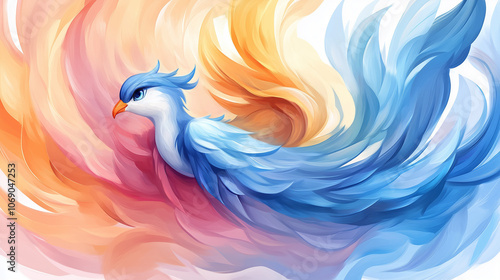 Obraz premium Colorful abstract bird illustration with flowing feathers in a vibrant background