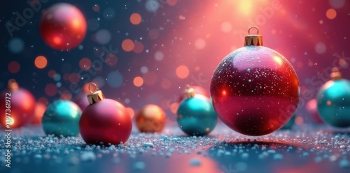 © Prayad, Fototapeta premium Colorful abstract Christmas balls floating in mid-air, sparkles, ornaments