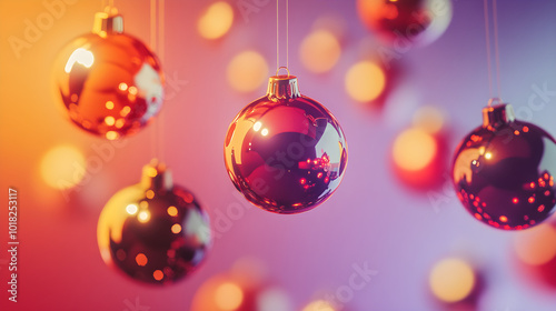 Fototapeta premium Colorful abstract Christmas baubles float elegantly against a blurred...