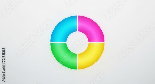 © Buckley, Obraz premium Colorful Abstract Circle: A vibrant, geometric representation of interconnected elements, with four distinct colored segments forming a unified whole.