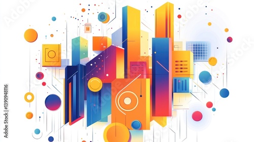© AdhiWilly Creative, Fototapeta premium Colorful Abstract Cityscape with Technology