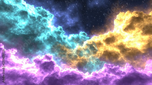 Fototapeta premium Colorful Abstract Cloud Formation with Stars in Night Sky