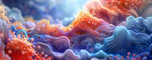 Naklejka premium Colorful abstract 3D rendering with vibrant colors and organic shapes,...