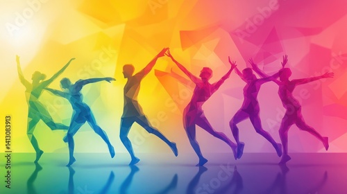 Naklejka premium Colorful Abstract Dancing Figures with Rainbow Gradient, Unity Theme, Joyful...