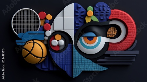 Fototapeta premium Colorful Abstract Design Featuring Sports Equipment and Shapes