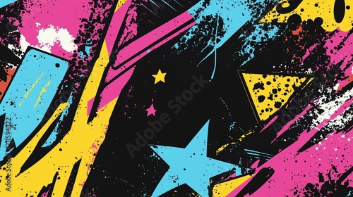 © Максим Фокин, Naklejka premium Colorful abstract design with stars and dynamic shapes