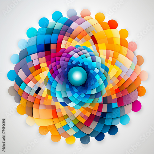 Obraz premium Colorful abstract digital art composed of overlapping circles and polygons with optical illusion effect.