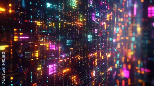 Fototapeta premium Colorful Abstract Digital Background with Glowing Pixels and Lights