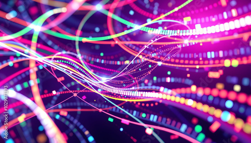 © Sergey, Fototapeta premium Colorful abstract digital data streams on white, concept of information technology dynamics. 3D Rendering isolated with white highlights, png