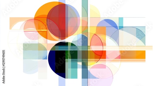 © Plaifah, Obraz premium Colorful abstract digital shapes with layered geometric forms and gradients, creating a vibrant and dynamic composition on a white background