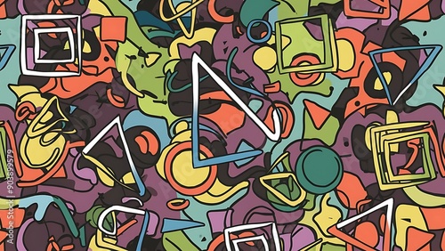 © Kartik, Fototapeta premium Colorful abstract doodle shape seamless pattern. Creative minimalist style art background, trendy design with basic shapes. Modern color wallpaper print backdrop