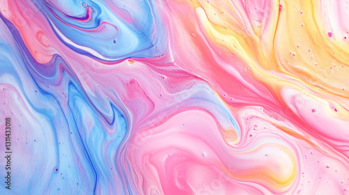 Fototapeta premium Colorful abstract fluid art with pink, blue, and yellow swirls