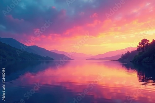 Fototapeta premium Colorful abstract gradient over a tranquil lake at dawn, gradient, colorful
