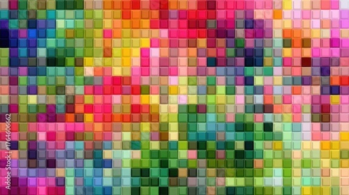 © Gulmira Uatkhanova, Fototapeta premium Colorful abstract grid of small vibrant squares background.