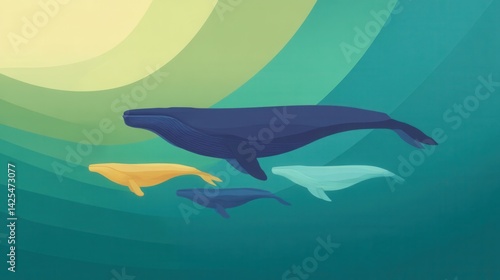 Obraz premium Colorful Abstract Illustration of Whales Swimming in Ocean Waters