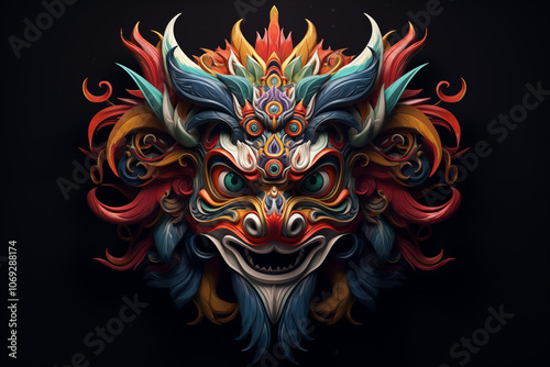Naklejka premium Colorful abstract lion mask design with intricate patterns and vibrant...