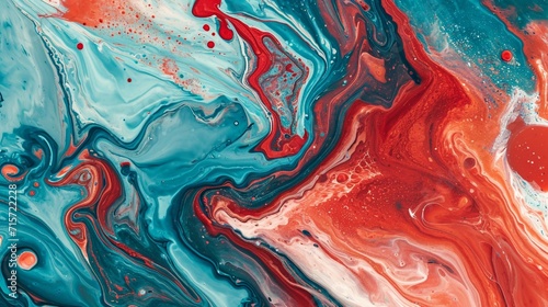 Obraz premium Colorful abstract liquid marble texture, fluid art. Very nice abstract teal red design swirl background.
