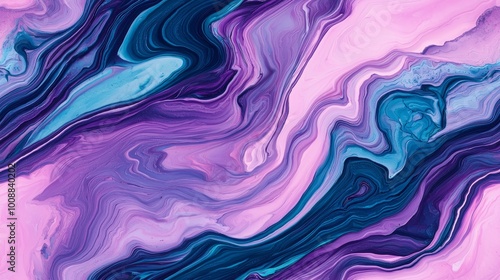 © Naphol, Obraz premium Colorful abstract marble texture with pink and blue swirls, suitable for backgrounds.