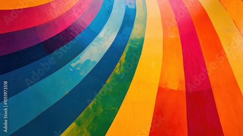 © Vergiliy, Fototapeta premium Colorful abstract mural with vibrant rainbow stripes