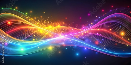 © sembiz sembiz, Fototapeta premium colorful abstract neon waves on a sparkling blue backdrop