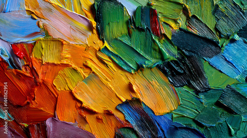 Obraz premium Colorful abstract oil paint brushstrokes create a vivid textured pattern in...