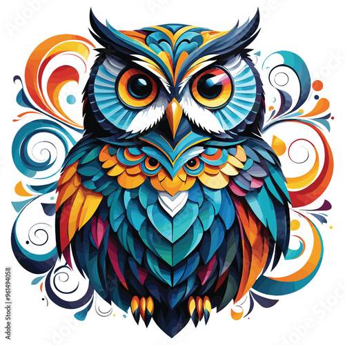 Fototapeta premium Colorful abstract owl illustration vector artwork vibrant swirls, perfect for...