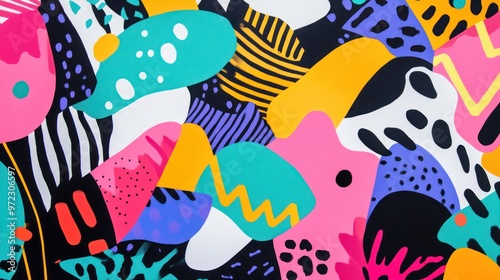 © Nathan, Fototapeta premium Colorful abstract pattern featuring vibrant shapes and bold designs, creating a lively and dynamic atmosphere.
