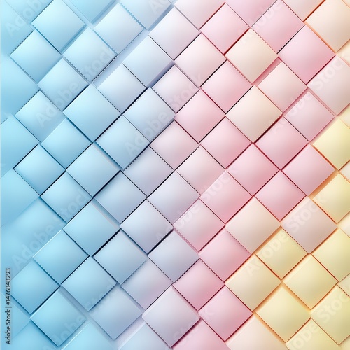 © tanawatbig, Obraz premium Colorful Abstract Pattern of Soft Pastel Squares and Geometry