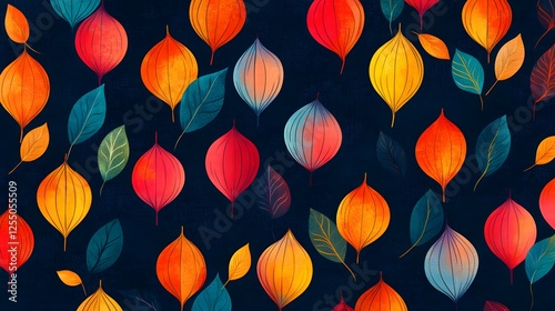 Fototapeta premium Colorful abstract pattern, vibrant circles in orange, red, and teal against a...