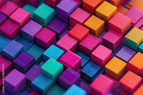 © Oranuch, Obraz premium Colorful abstract patterns of cubes digital art vibrant environment close-up view modern concept for visual impact
