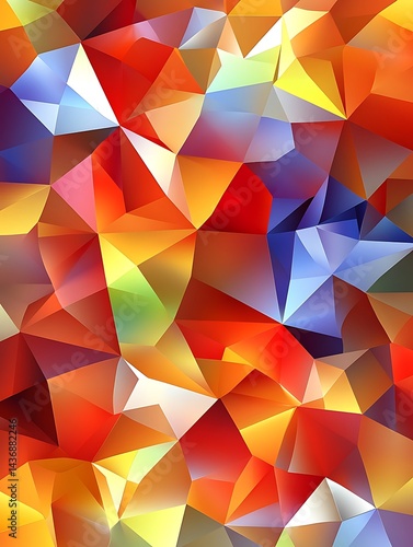 © Kiki, Obraz premium Colorful Abstract Polygon Mesh Background with Geometric Triangular Facets