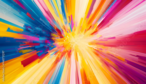 © fannybuddhies, Obraz premium Colorful Abstract Rays Explode Outward with Vivid Hues Dynamically