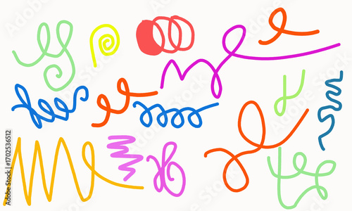 © Mostofa84, Naklejka premium Colorful Abstract Scribble Lines Collection on White Background