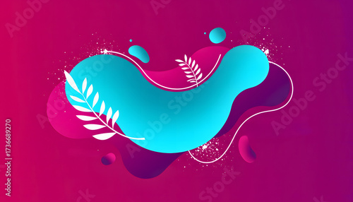 © Ludmila Demintseva, Obraz premium Colorful abstract shape design with botanical elements on a gradient background with copy space