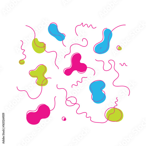 © Eko Darisnadi, Obraz premium Colorful abstract shapes and lines create a playful and vibrant composition on white background.