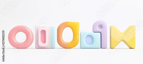 Fototapeta premium Colorful abstract shapes arranged in a row on white background.