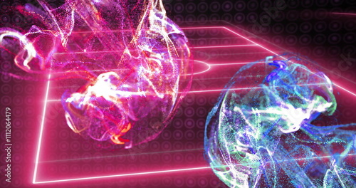 © vectorfusionart, Naklejka premium Colorful abstract shapes over basketball court image