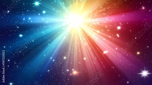 © Thiago, Naklejka premium Colorful abstract starburst light background. Starburst. Illustration