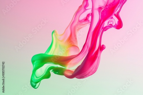 © Adi, Naklejka premium Colorful Abstract Swirl: Pink and Green Fluid Motion on Soft Background