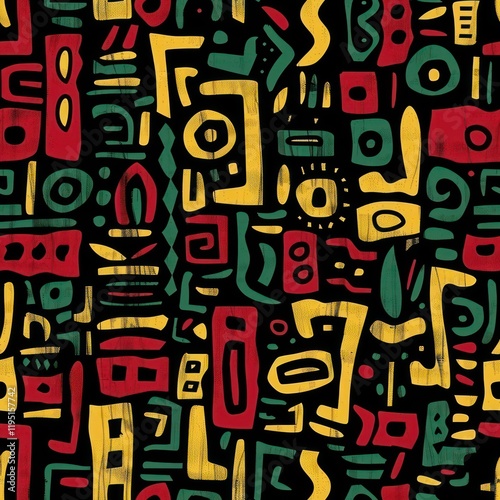 Fototapeta premium Colorful Abstract Tribal Pattern with Hand-Drawn Elements By Generated AI