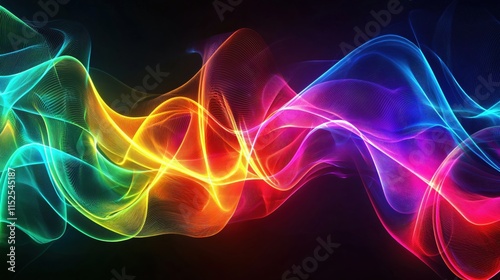© Ketobox, Fototapeta premium Colorful abstract wave pattern with glowing lines on a dark background