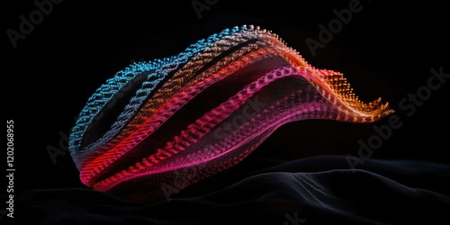 © Konstiantyn Zapylaie, Obraz premium Colorful abstract waveform with dynamic lighting on black background